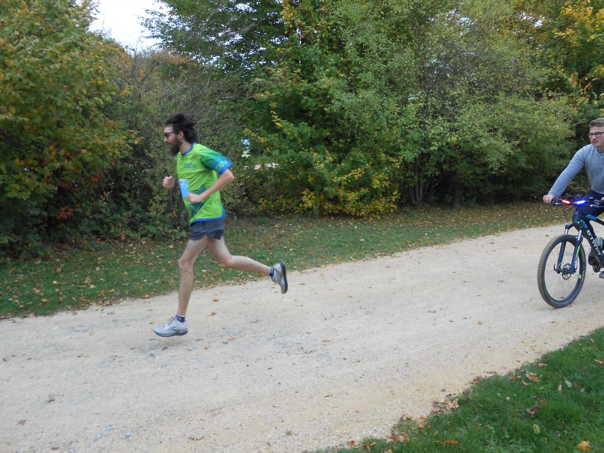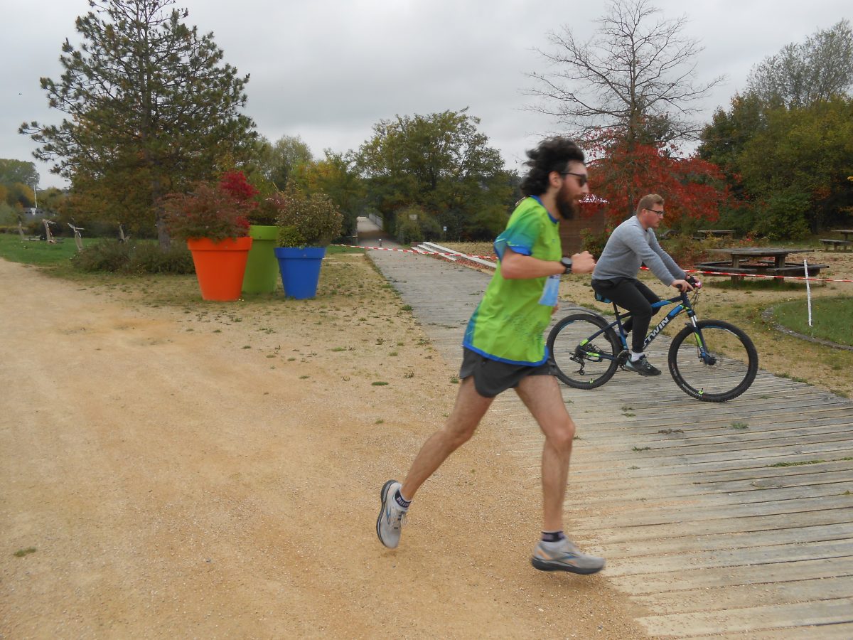Florian a déjà couru le 5 km en moins de 20′ et n’a laissé aucune chance à ses adversaires, restant en tête calé derrière le vélo ouvreur. Il adore les statistiques de course et à l’esprit compétiteur. De son côté Simon a effectué des bouts de parcours seul, guidé par la voix de maman et le dernier tour du 5 km maman était en vélo juste derrière lui pour le rassurer.