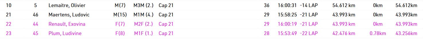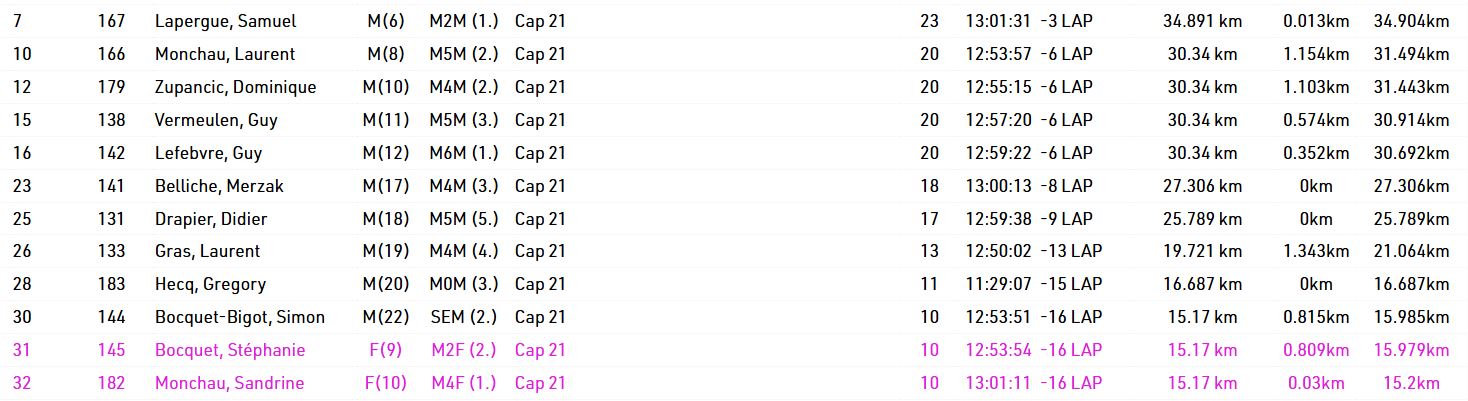 Sur le plan sportif, à noter les 2 titres de champion de l’Aisne Ufolep de course de durée remportés par Didier Drapier et Stéphanie Bocquet (sur le 3h). Et aussi la 1er place en féminine par équipe sur le 6h du trio Géraldine, Lydivine et Céline