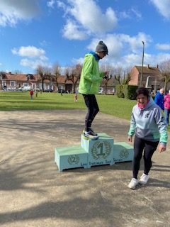 Course particulière puisque CAP 21 avait prêté son matériel de chronométrage aux organisateurs. Sur la ligne de départ, il y avait notre duo Simon / maman sur le 7 km. Qui a eu la lourde mission de ramener le matos.