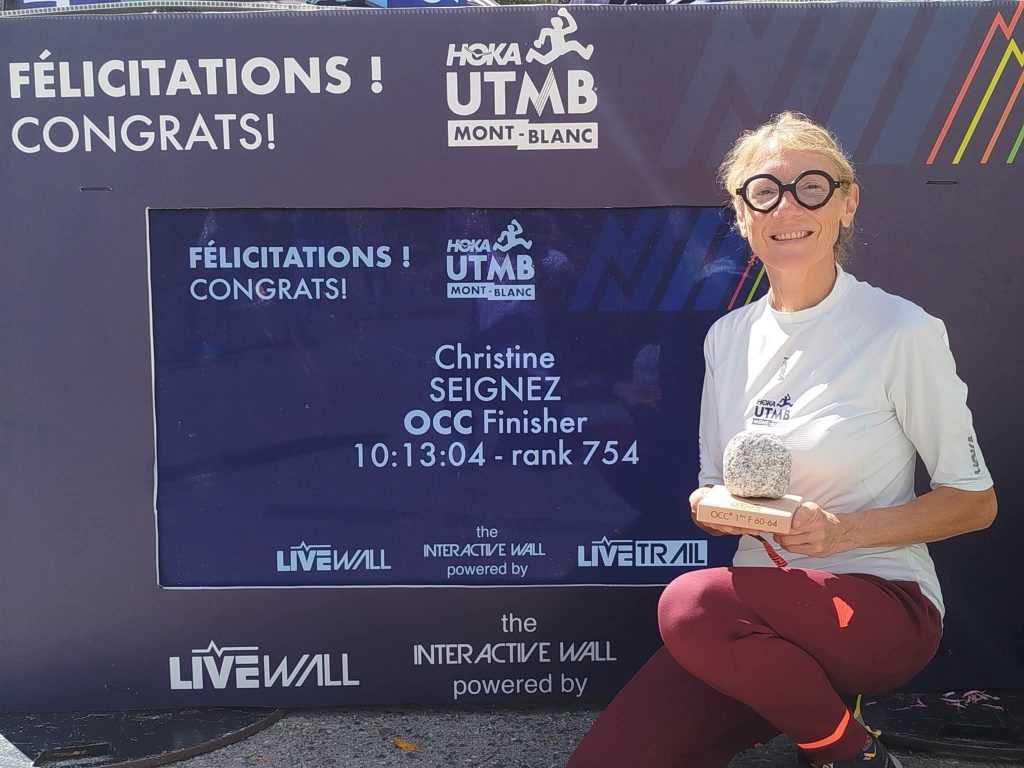 Christine remporte donc l’OCC dans sa catégorie (master 5) en réalisant 10:13’04 (soit avec près de 2h de moins que ses prévisions). Au général, elle est 754e. Le temps limite était de 14h30.
