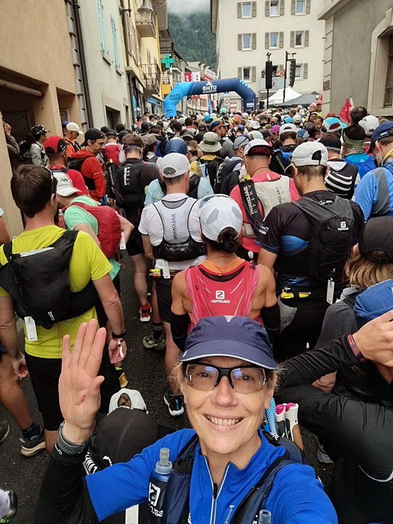 Comme à chaque fois elle a terminée 1ere de sa catégorie (ou 2e), c’est avec une place de choix qu’elle a obtenu le précieux sésame. Mais, c’est sans aucune pression que notre capienne a pris le départ. Ses craintes étaient plutôt du côté de la météo avec l’annonce de pluie qui pouvaient rendre le parcours dangereux en plus de sa technicité. Elle savait pouvoir compter sur une préparation méticuleuse (ni trop, ni trop peu mais juste ce qu’il faut) et de l’expérience acquise au fil du temps. Les quelques semaines précédentes à randonnée dans le massif du Mont Blanc ne sont pas étranger non plus à son résultat.